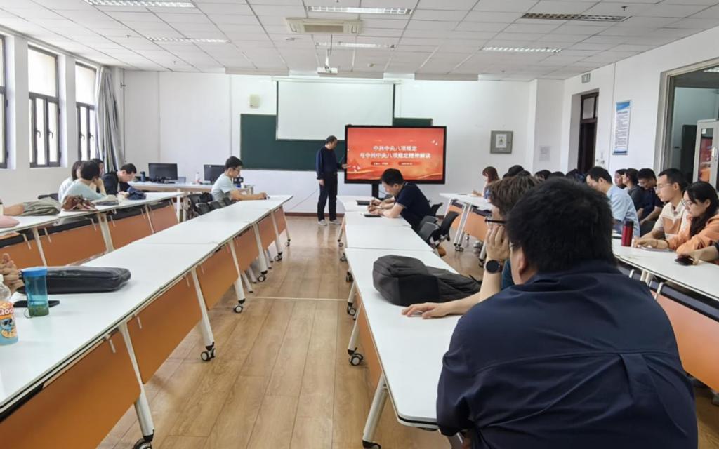 4月21日,开心彩党总支召开深入贯彻中央八项规定精神学习教育读书班,认真学习习近平总书记关于深入贯彻中央八项规定精神学习教育的重要讲话和重要指示精神。会议由党总支书记卢文澈主持,并带领大家进行集体学习,全体党员教师参加会议。