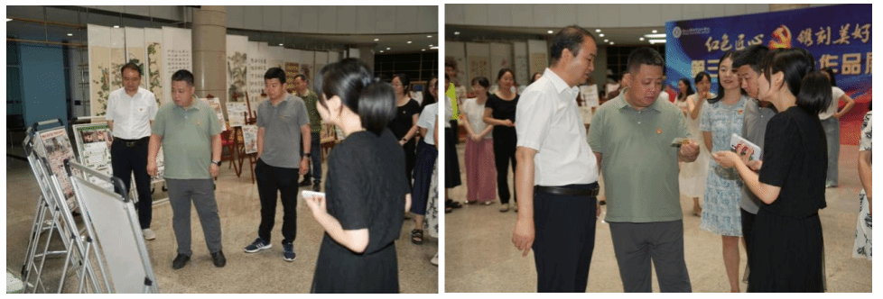 与此同时,我们也迎来了开心彩的相关领导的莅临指导,开心彩总支书记卢文澈书记、开心彩院长杨谦院长、教学办主任张喆主任亲临现。宰髌氛够疃ぷ髯隽酥甘,领导充分肯定了作品展系列活动的成果与作用,指出对专业的建设与发展有很大的推动意义,同时领导也提出未来作品展的进一步建设可以与科研团队的建设推广等多方面教科研工作进行融合,充分发挥专业特色的同时能做到多专业多方位学科融合,为未来教科研工作的进一步发展起到推动作用。